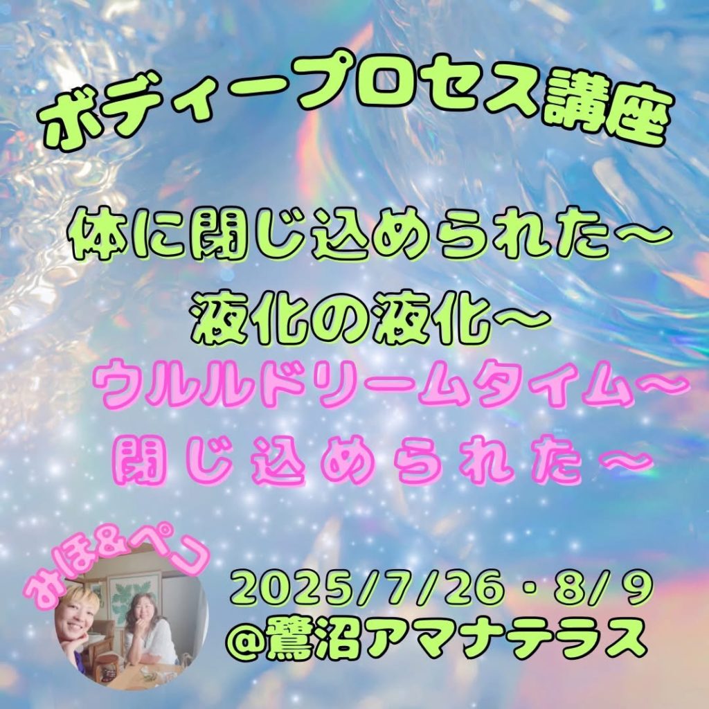 アクセスコンシャスネスのボディプロセス講座をペコちゃんと共同開催!たくさんあるボディプロセスの中から「液化の液化」「ウルルドリームタイム」!この二つのボディプロセスの組み合わせがとてもいいんです。